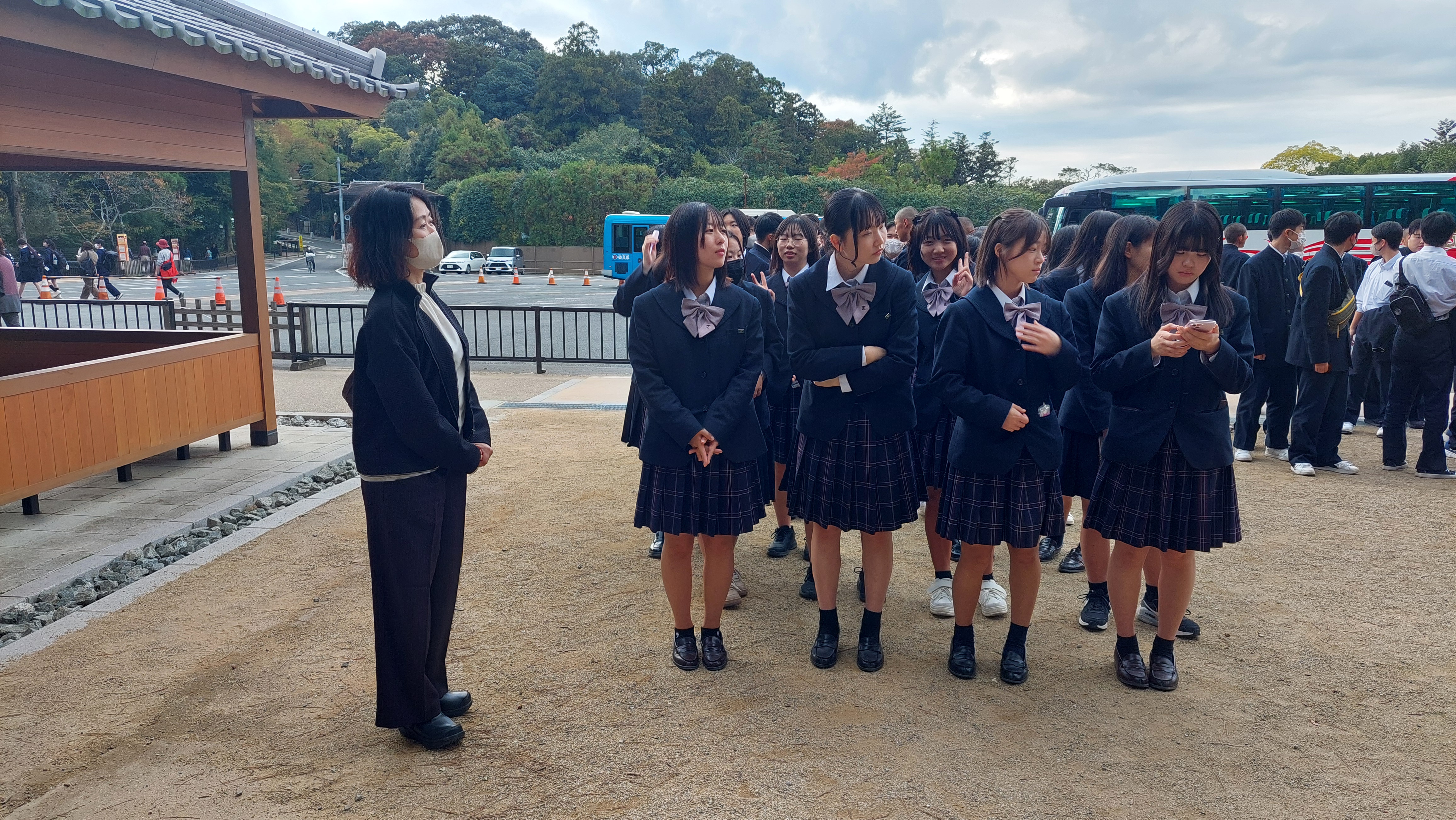 2024年11月12日 17時00分- 本日より、3泊4日の関西方面に修学旅行が始まります。朝の7時に、全員が郡山駅西口に集合しました。郡山駅西口に渡邊亮校長、黒澤先生、松崎先生が見送りにくださいました。郡山駅からやまびこ122号に乗車し、東京駅に9時33分に到着しました。東京駅からひかり637号に乗り換え、京都駅に12時12分に到着しました。その後、貸し切りバスに乗車して、薬師寺に到着しました。薬師寺では、お坊さんから有難く、面白い法話を聞きました。その中で面白いや応援すること意味を学びました。これからの人生に役立ててほしいです。